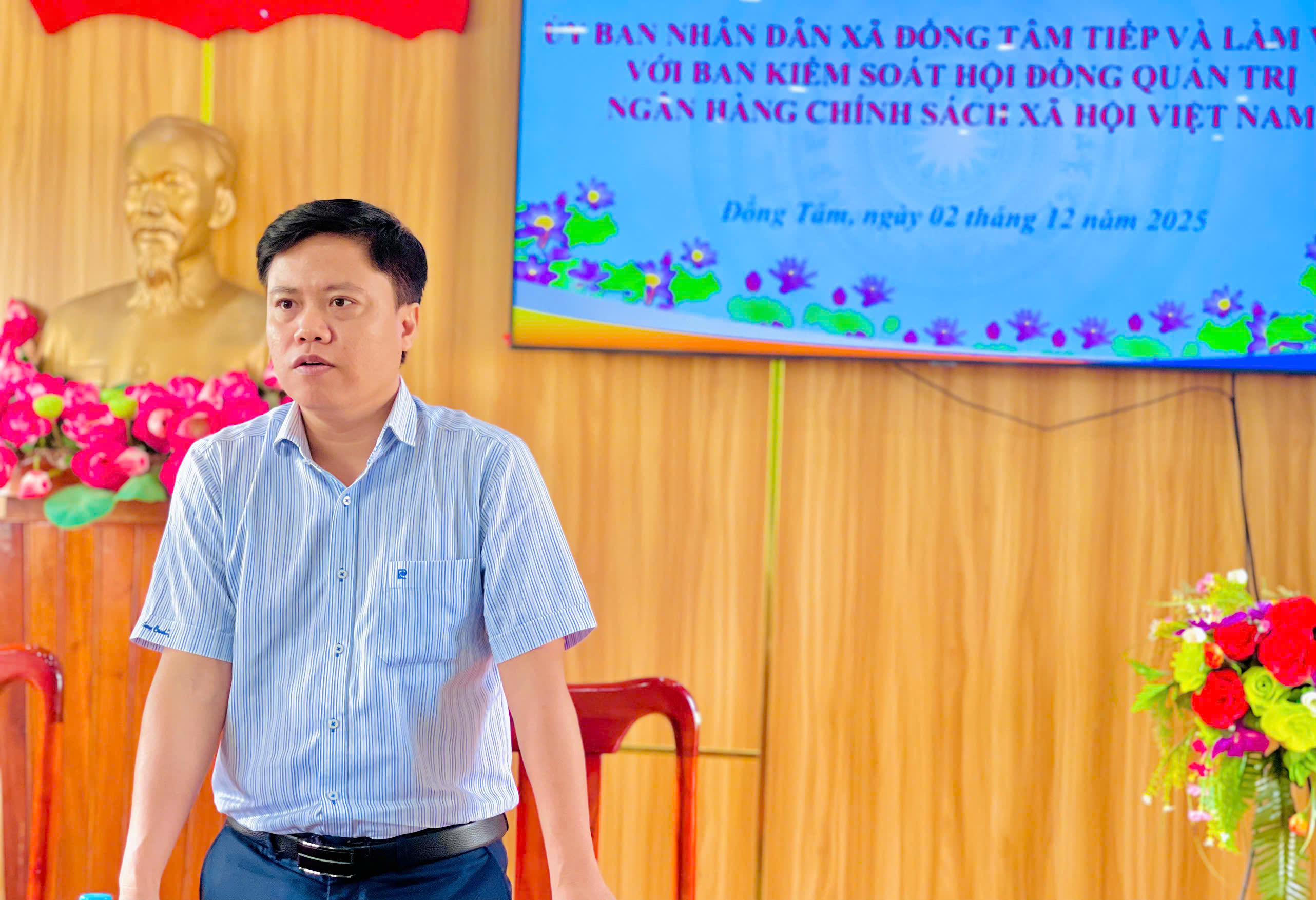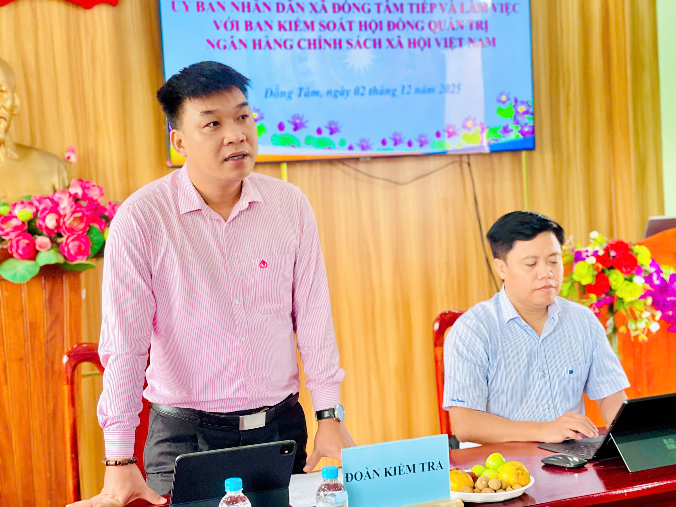 (Đồng Tâm) - Sáng 02/12/2025, Đoàn kiểm tra, giám sát của Ban Kiểm soát Hội đồng quản trị Ngân hàng Chính sách xã hội (NHCSXH) Việt Nam do đồng chí Nguyễn Quang Hưng – Thành viên chuyên trách Ban Kiểm soát làm Trưởng đoàn đã có buổi làm việc với UBND xã Đồng Tâm.