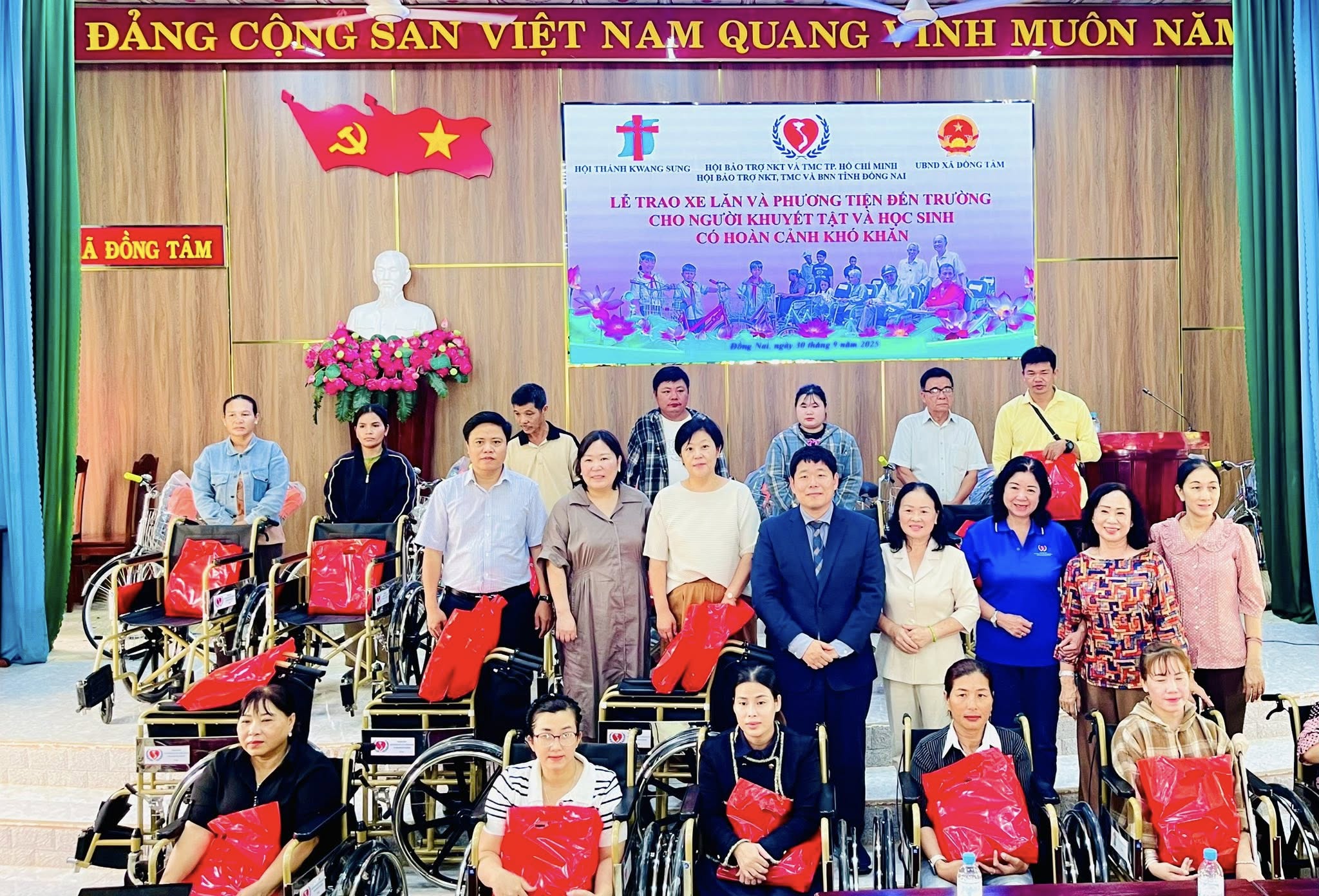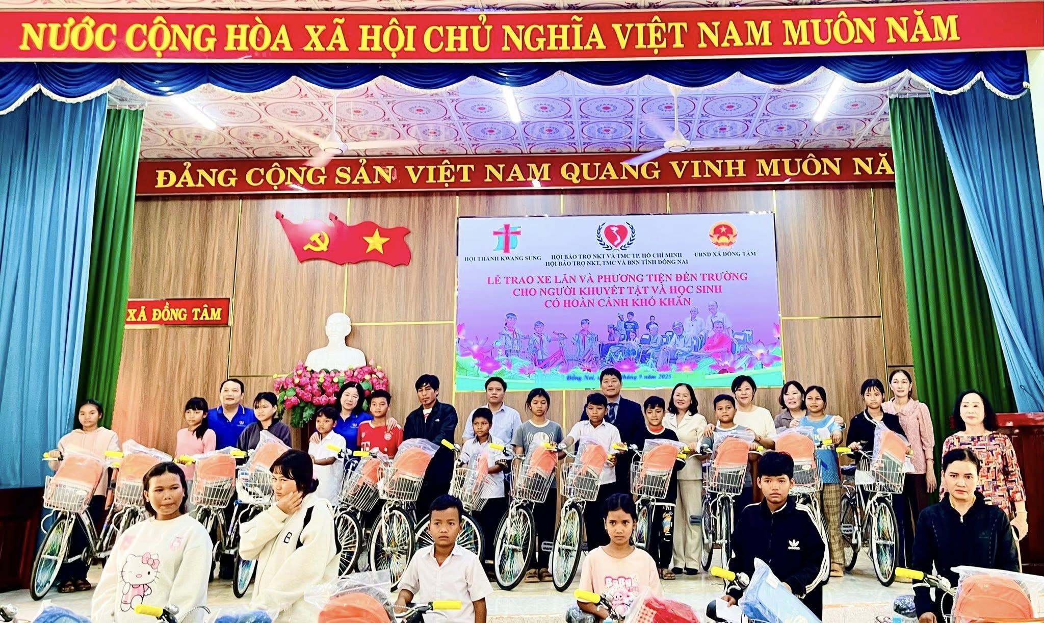(ĐỒNG TÂM) - Ngày 30/9/2025, tại xã Đồng Tâm đã diễn ra chương trình “Trao tặng xe lăn cho người khuyết tật và xe đạp cho học sinh có hoàn cảnh khó khăn, hiếu học” do Hội Bảo trợ Người khuyết tật và Trẻ mồ côi Thành phố Hồ Chí Minh, Hội Bảo trợ Người khuyết tật, Trẻ mồ côi và Bệnh nhân nghèo tỉnh Đồng Nai, Hội Thánh Kwang Sung phối hợp cùng UBND xã Đồng Tâm tổ chức.