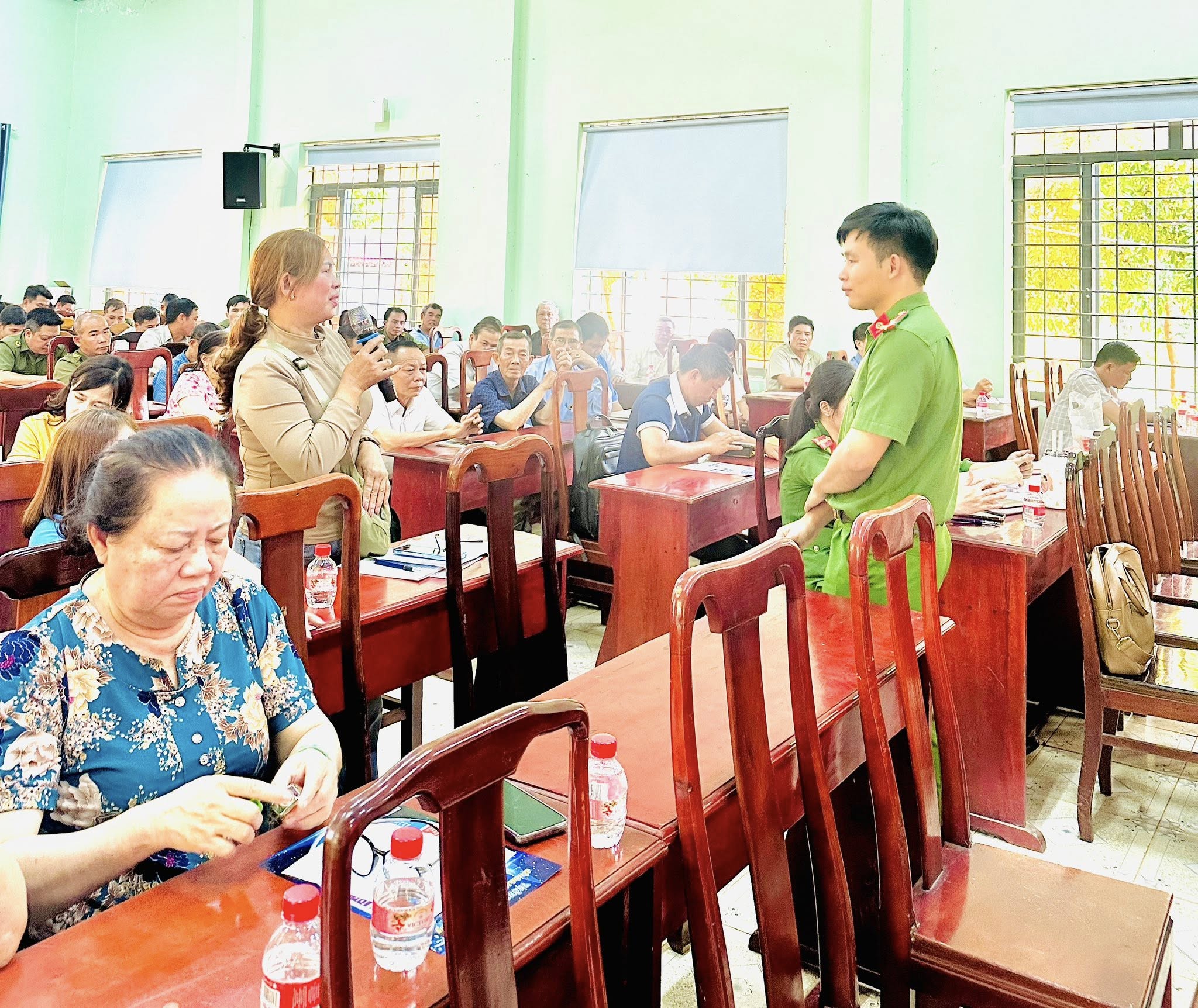 Tại buổi tuyên truyền, cán bộ Công an tỉnh đã truyền đạt các nội dung trọng tâm về công tác bảo đảm an ninh trật tự, trong đó tập trung tuyên truyền về an ninh mạng; cảnh báo các phương thức, thủ đoạn lừa đảo chiếm đoạt tài sản trên không gian mạng; hướng dẫn người dân cách bảo vệ thông tin cá nhân, kỹ năng nhận diện và xử lý khi gặp tình huống nghi vấn. Đồng thời, phổ biến các biện pháp phòng cháy, chữa cháy và cứu nạn, cứu hộ; các quy định của pháp luật về quản lý, sử dụng vũ khí, vật liệu nổ, công cụ hỗ trợ và pháo, qua đó nâng cao ý thức chấp hành pháp luật, chủ động phòng ngừa, đấu tranh với các hành vi vi phạm.