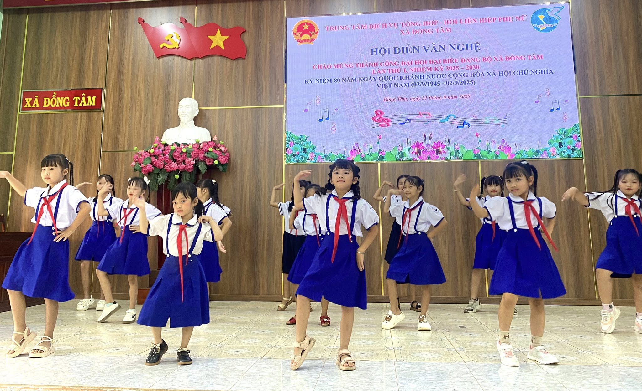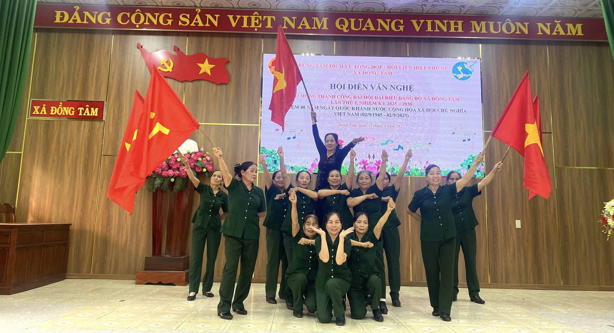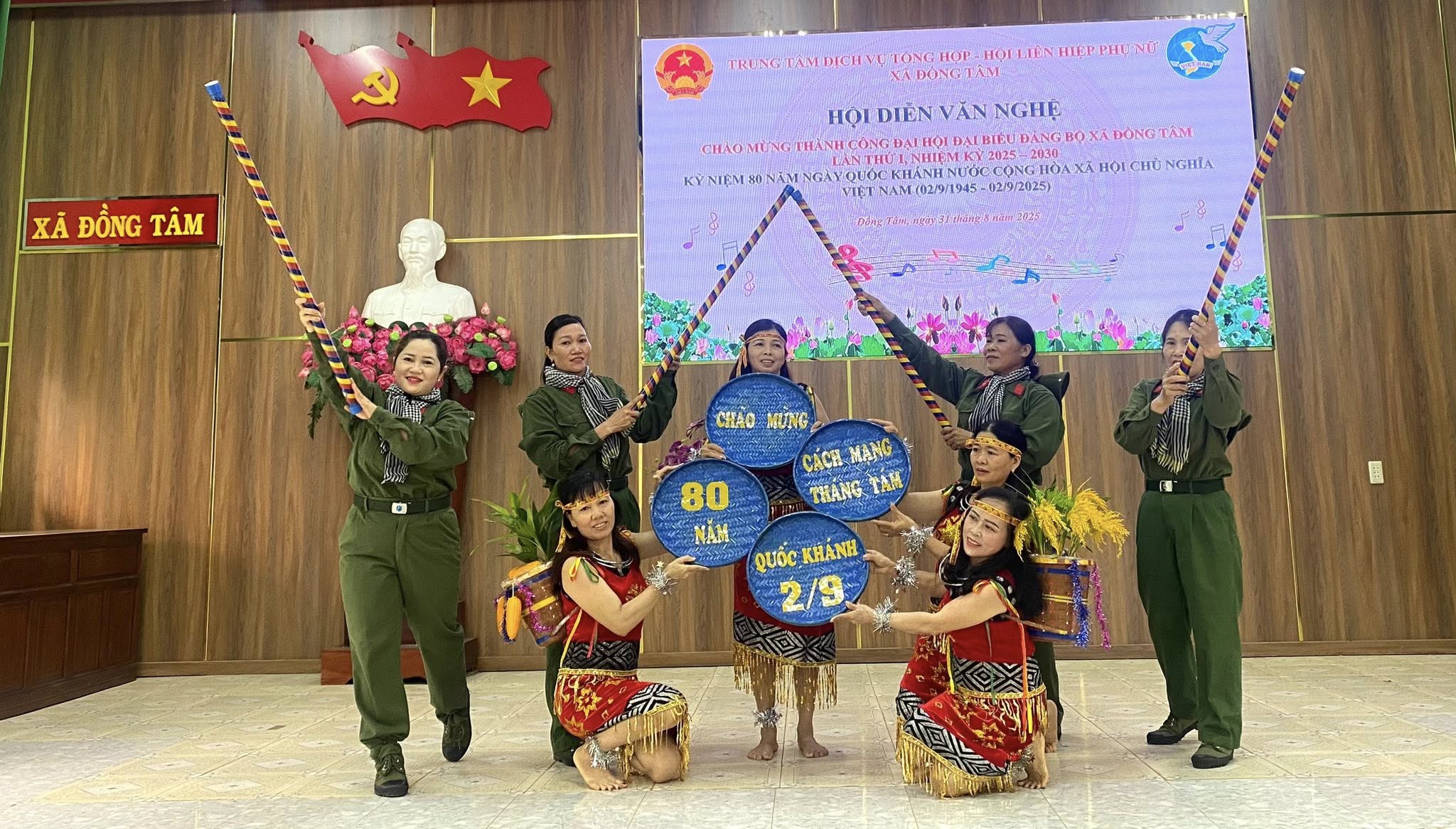 (ĐỒNG TÂM) - Sáng ngày 31/8/2025, tại Hội trường UBND xã Đồng Tâm, Trung tâm Dịch vụ tổng hợp phối hợp với Hội Liên hiệp Phụ nữ xã tổ chức Hội diễn văn nghệ chào mừng thành công Đại hội đại biểu xã Đồng Tâm lần thứ I, nhiệm kỳ 2025 – 2030; kỷ niệm 80 năm Quốc khánh nước Cộng hòa XHCN Việt Nam (02/9/1945 – 02/9/2025).