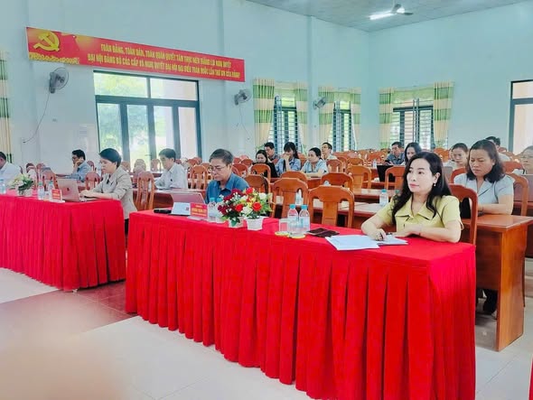 Tại điểm cầu Hội trường Đảng ủy xã, đồng chí Đinh Văn Kỹ – Bí thư Đảng ủy, Chủ tịch Hội đồng nhân dân xã và đồng chí Phùng Thị Cẩm Tú – Phó Bí thư Thường trực Đảng ủy xã dự và chủ trì; cùng dự có đảng viên Đảng bộ các cơ quan Đảng.
