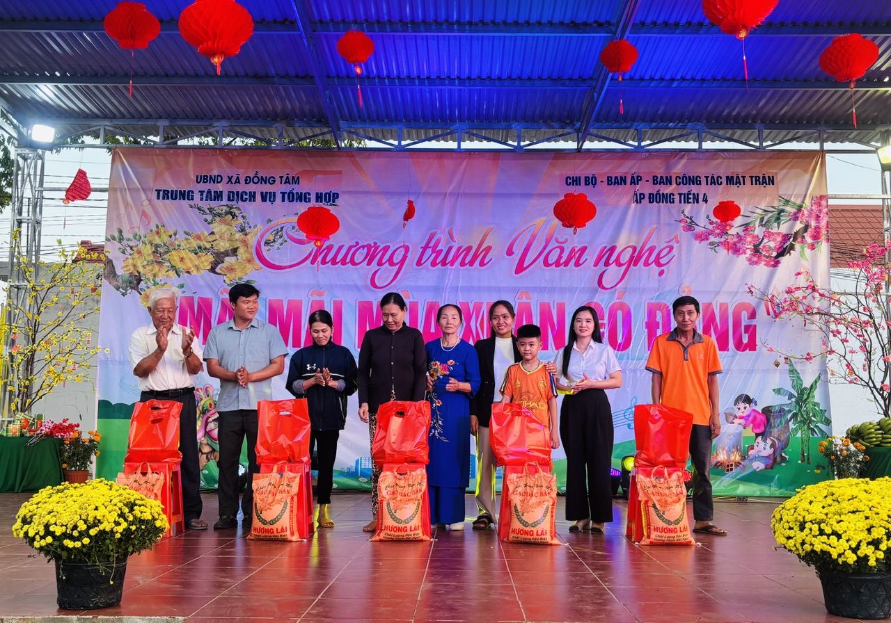 Dịp này, đồng chí Nguyễn Thị Vân Anh đã trao tặng 10 phần quà cho 10 hộ gia đình có hoàn cảnh khó khăn trên địa bàn. Chi bộ ấp Đồng Tiến 4 trao 05 phần quà cho các hộ khó khăn thông qua mô hình “Dân vận khéo – Điểm sáng trong công tác giảm nghèo”; khu dân cư ấp Đồng Tiến 4 trao 06 phần quà cho 06 thanh niên chuẩn bị lên đường nhập ngũ, thể hiện sự quan tâm, động viên kịp thời của cấp ủy, chính quyền và cộng đồng dân cư.