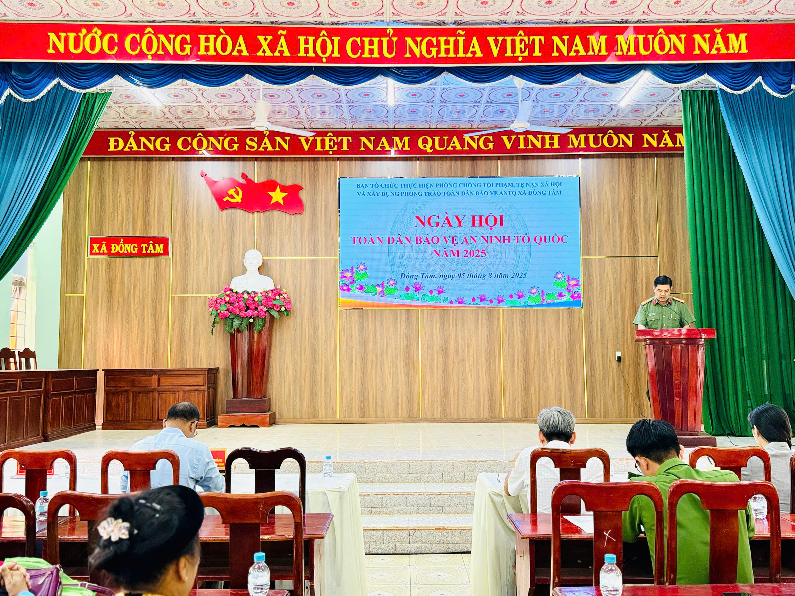 Dự Ngày hội có đồng chí Nguyễn Thanh Phương - Phó Bí thư Đảng ủy - Chủ tịch UBND xã , đồng chí Thạch Kim Thành - Phó Chủ tịch HĐND xã, đồng chí Nguyễn Thị Vân Anh - UVBTV- Chủ tịch UBMTTQ xã, Thượng tá Lê Anh Tuấn - Trưởng Công an xã cùng đại diện các phòng chuyên môn UBND-HĐND xã, cán bộ- chiến sỹ công an xã; lực lượng An ninh cơ sở; đại diện các hộ dân tiêu biểu, gia đình có truyền thống công tác trong lực lượng CAND, các đồng chí Bí thư Chi bộ, Trưởng các ấp, người có uy tín và quần chúng nhân dân trên địa bàn Xã Đồng Tâm.