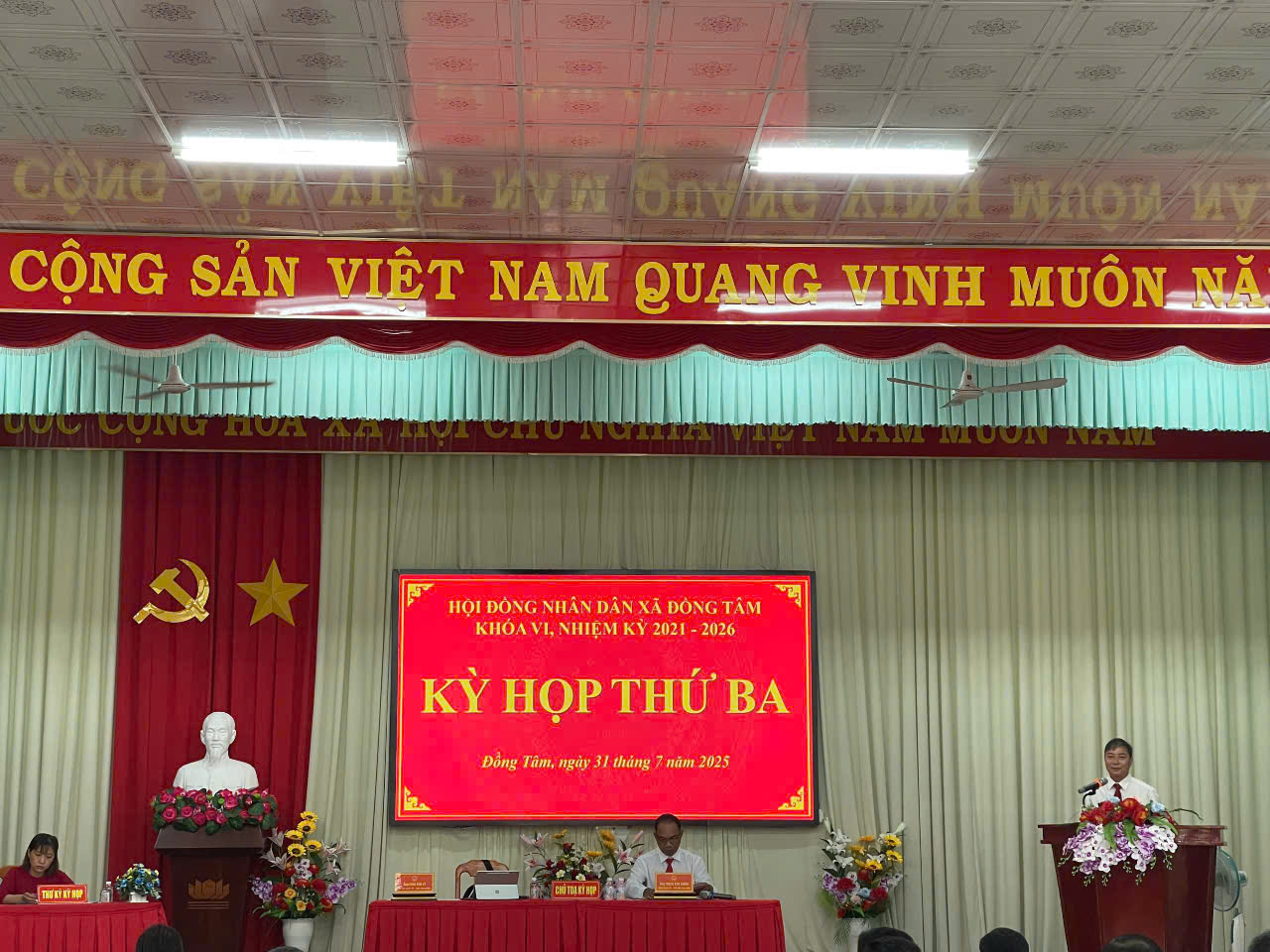 (ĐỒNG TÂM) - Sáng 31/7/2025, HĐND xã Đồng Tâm khóa xã khóa VI, nhiệm kỳ 2021-2026 đã tổ chức Kỳ họp thứ Ba (Kỳ họp giữa năm), nhằm đánh giá kết quả thực hiện nhiệm vụ phát triển kinh tế - xã hội, quốc phòng - an ninh 6 tháng đầu năm và phương hướng, nhiệm vụ 6 tháng cuối năm năm 2025; tình hình thực hiện thu, chi ngân sách 6 tháng đầu năm; dự toán thu, chi ngân sách địa phương năm 2025.