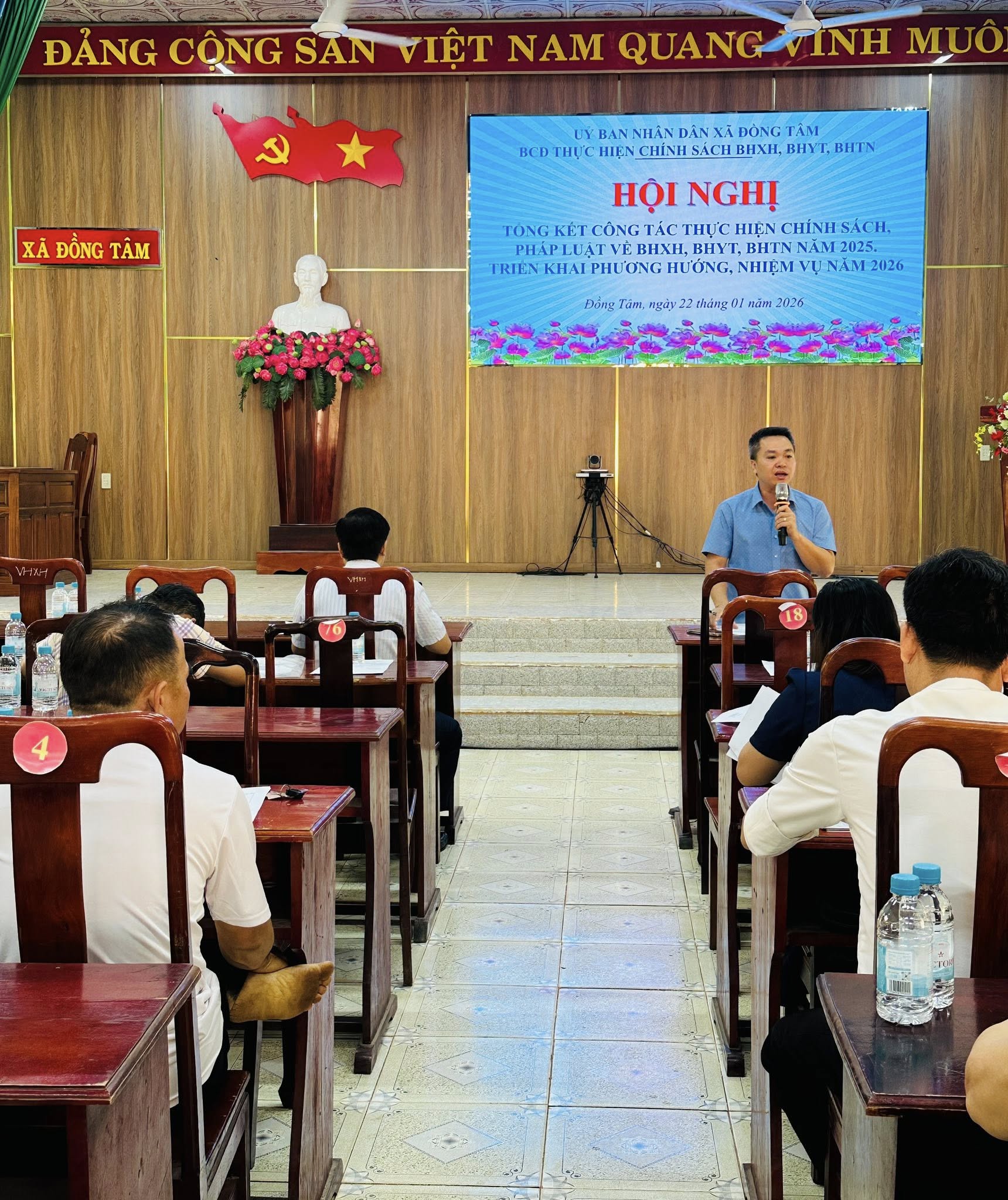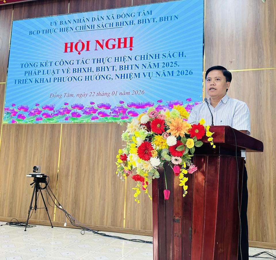(ĐỒNG TÂM) – Chiều ngày 22/01/2026, Ban Chỉ đạo thực hiện chính sách bảo hiểm xã hội, bảo hiểm y tế, bảo hiểm thất nghiệp xã Đồng Tâm tổ chức Hội nghị tổng kết công tác thực hiện chính sách, pháp luật về bảo hiểm xã hội, bảo hiểm y tế, bảo hiểm thất nghiệp năm 2025; triển khai phương hướng, nhiệm vụ năm 2026.