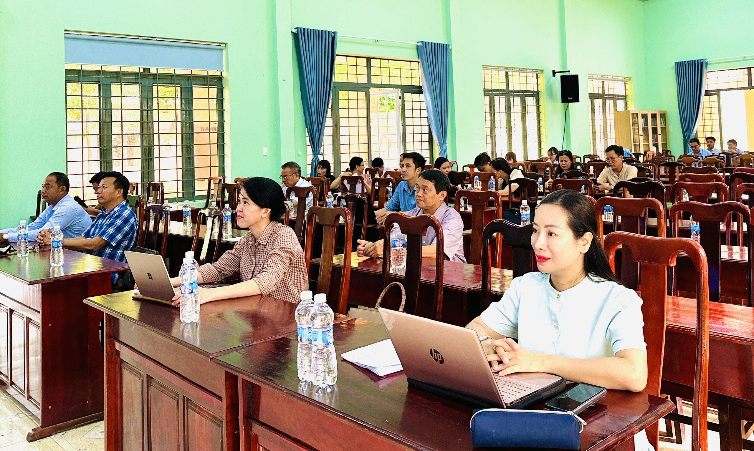 Tham dự hội nghị tại điểm cầu xã có các đồng chí Ủy viên Ban Thường vụ, Ủy viên Ban Chấp hành Đảng bộ xã; lãnh đạo, chuyên viên các cơ quan tham mưu, giúp việc Đảng ủy; cùng lãnh đạo các phòng, ban chuyên môn thuộc UBND xã.