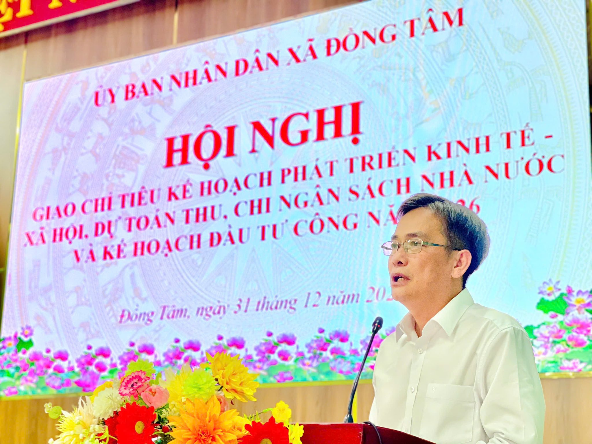(ĐỒNG TÂM) - Chiều ngày 31/12/2025, tại Hội trường UBND xã, UBND xã Đồng Tâm tổ chức Hội nghị giao chỉ tiêu Kế hoạch phát triển kinh tế - xã hội, dự toán thu, chi ngân sách nhà nước và kế hoạch đầu tư công năm 2026 trên địa bàn xã.
