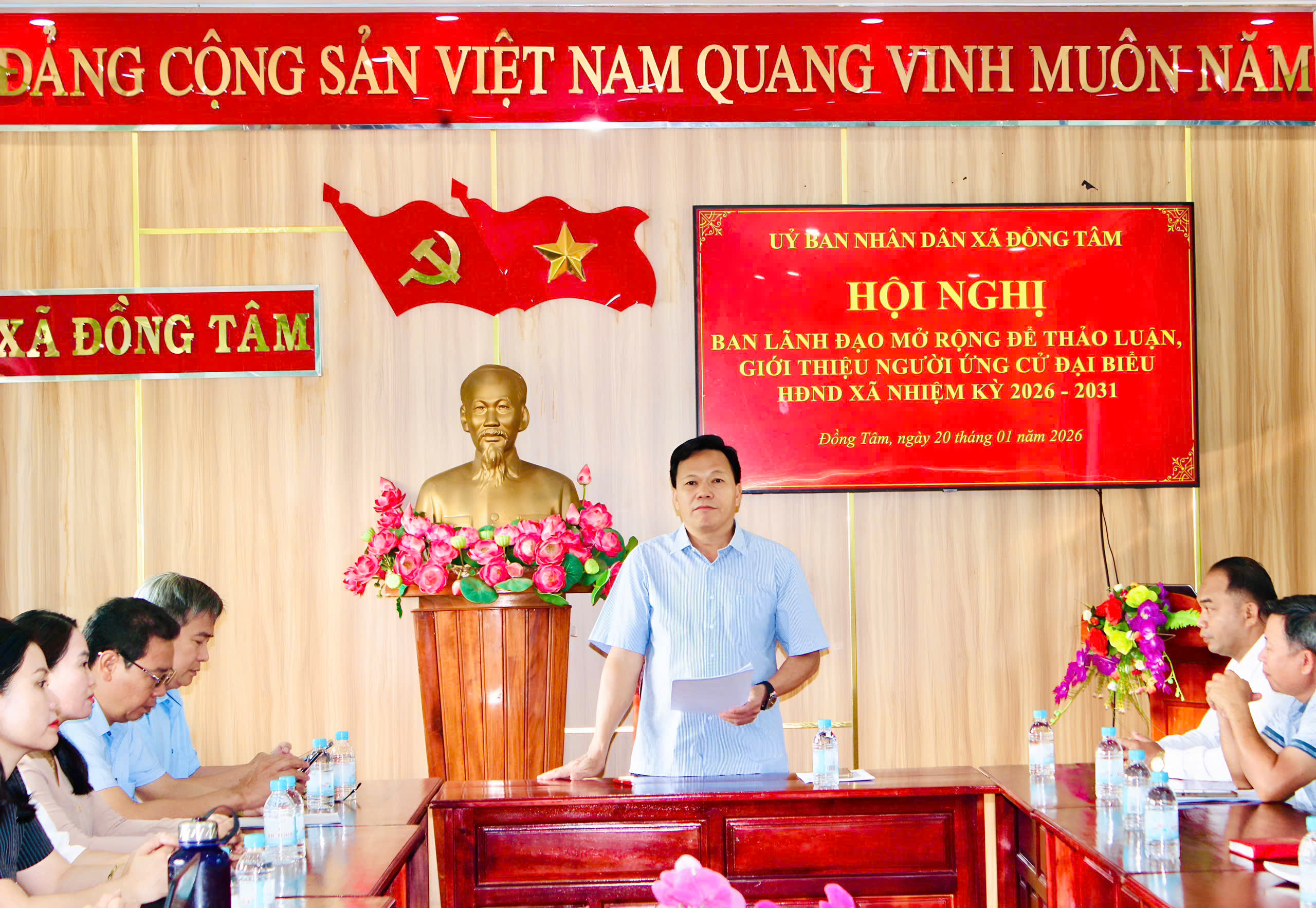 (ĐỒNG TÂM) – Sáng ngày 20/01/2026, tại Hội trường Ủy ban nhân dân xã, xã Đồng Tâm tổ chức Hội nghị mở rộng thảo luận, giới thiệu người ứng cử đại biểu Hội đồng nhân dân xã nhiệm kỳ 2026 – 2031. Hội nghị do đồng chí Nguyễn Chí Thường, Ủy viên Ban Thường vụ Đảng ủy, Phó Chủ tịch Ủy ban nhân dân xã chủ trì.