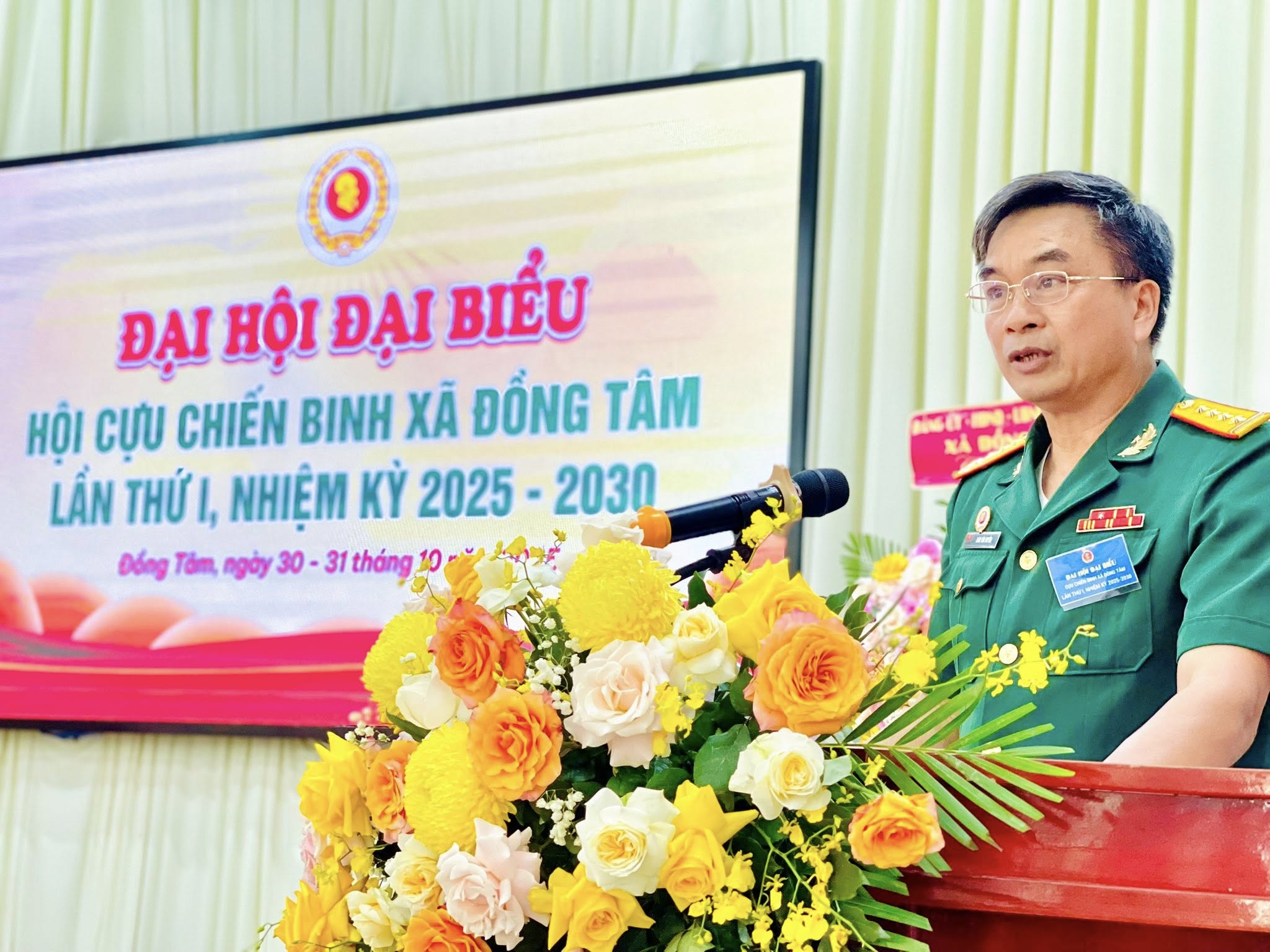 Phát biểu tại Đại hội, Đồng chí Đàm Văn Huyền – Phó Ban công tác CCB tỉnh ghi nhận và biểu dương những kết quả mà Hội Cựu chiến binh xã Đồng Tâm đã đạt được trong thời gian qua. Đồng chí nhấn mạnh: “Hội Cựu chiến binh xã Đồng Tâm đã thể hiện rõ vai trò là lực lượng chính trị - xã hội tin cậy, luôn gương mẫu, tiên phong trong các phong trào thi đua yêu nước, góp phần tích cực vào sự phát triển kinh tế - xã hội và giữ vững quốc phòng, an ninh tại địa phương. Trong nhiệm kỳ mới, Hội cần tiếp tục phát huy truyền thống đoàn kết, phát triển toàn diện, đổi mới nội dung và phương thức hoạt động, chăm lo tốt hơn đời sống vật chất và tinh thần cho hội viên, tích cực tham gia xây dựng Đảng, chính quyền vững mạnh, xứng đáng với niềm tin yêu của Nhân dân.”