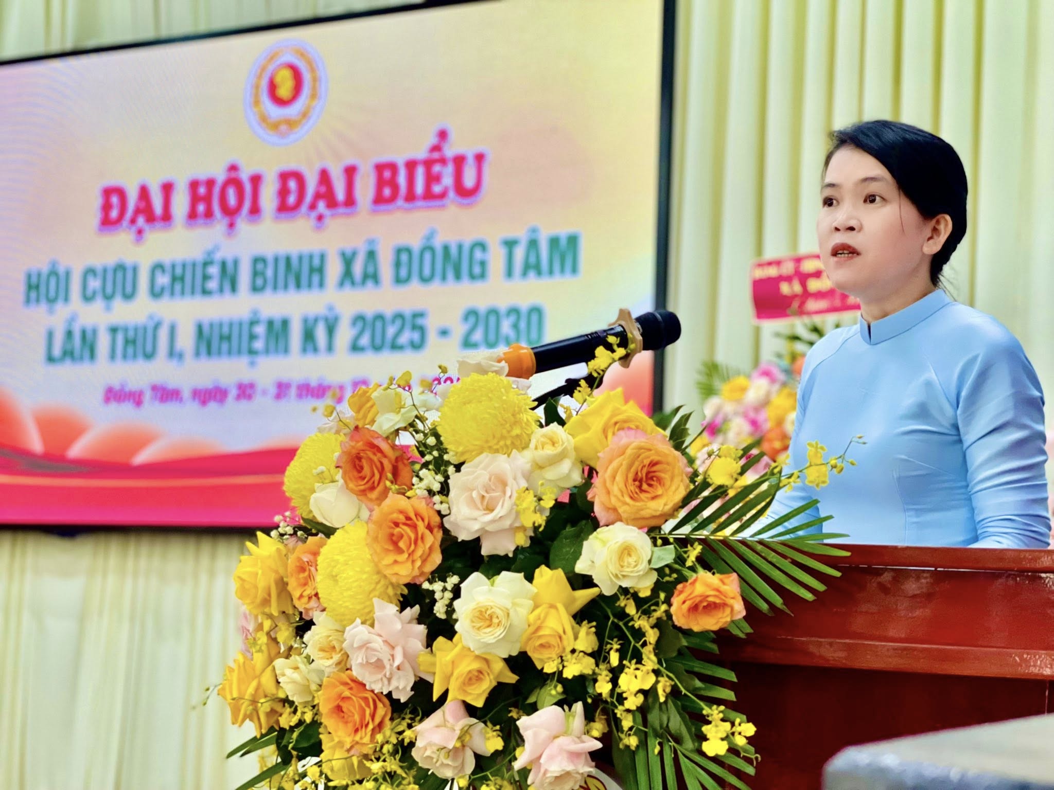 Đồng chí Phùng Thị Cẩm Tú – Phó Bí Thư Thường Trực Đảng uỷ xã đã phát biểu và khẳng định: “Đảng uỷ xã Đồng Tâm luôn đánh giá cao vai trò của Hội Cựu chiến binh trong công tác phối hợp thực hiện các nhiệm vụ chính trị của địa phương. Hội đã góp phần quan trọng trong việc tuyên truyền, vận động Nhân dân chấp hành tốt chủ trương, đường lối của Đảng, chính sách pháp luật của Nhà nước; tích cực tham gia xây dựng nông thôn mới, giữ gìn an ninh trật tự và phát triển kinh tế - xã hội. Đảng uỷ tin tưởng rằng, nhiệm kỳ 2025 – 2030, Hội sẽ tiếp tục đoàn kết, đổi mới, sáng tạo, hoàn thành xuất sắc các mục tiêu Nghị quyết Đại hội đề ra, đóng góp xứng đáng vào sự phát triển của xã nhà.”