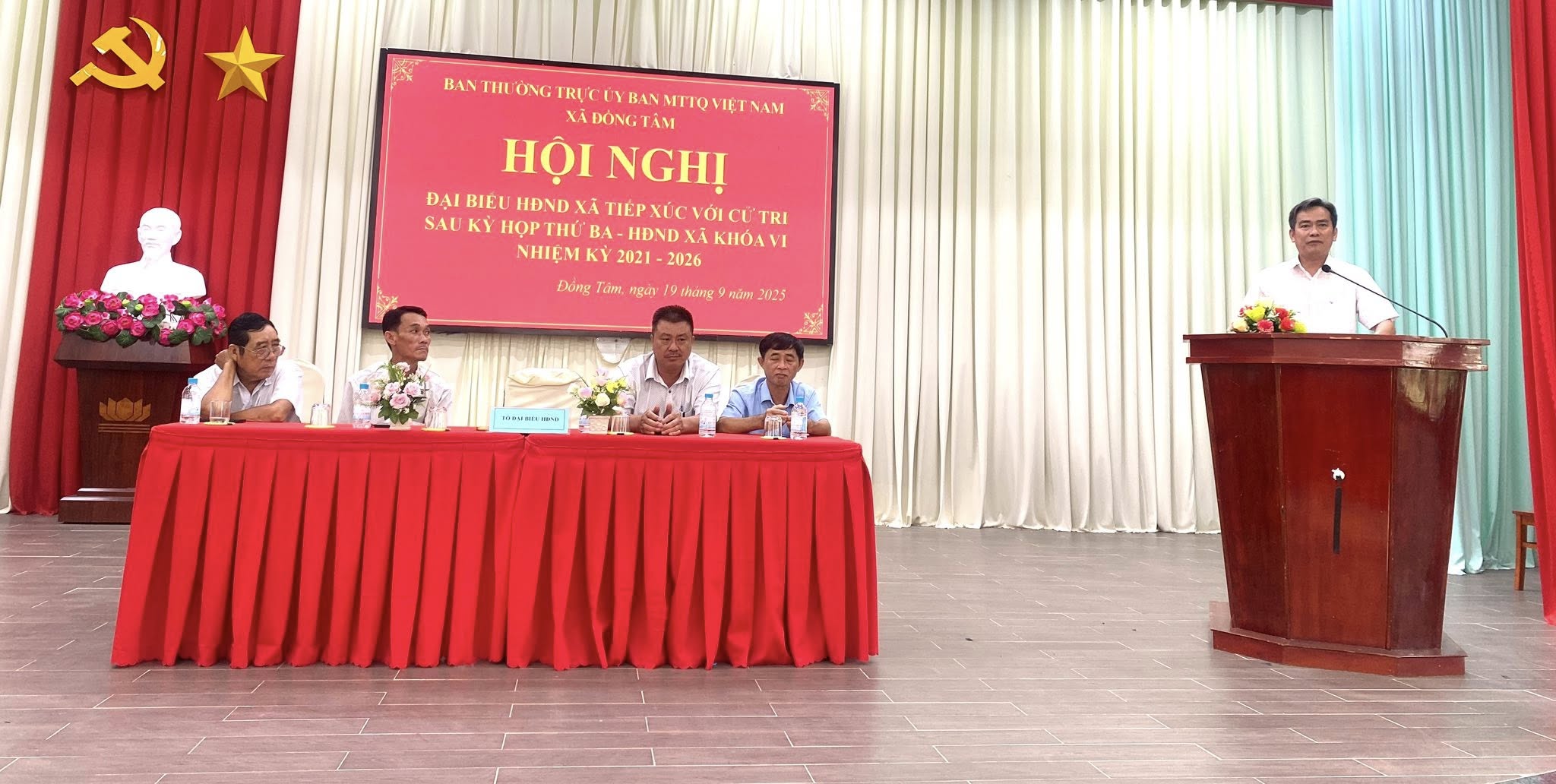 (ĐỒNG TÂM) - Sáng ngày 19/9/2025, tại Hội trường Đảng ủy xã Đồng Tâm, Ban Thường trực Ủy ban MTTQ Việt Nam xã đã tổ chức Hội nghị tiếp xúc cử tri với đại biểu HĐND xã sau kỳ họp thứ Ba, khóa VI, nhiệm kỳ 2021-2026 (điểm số 2).