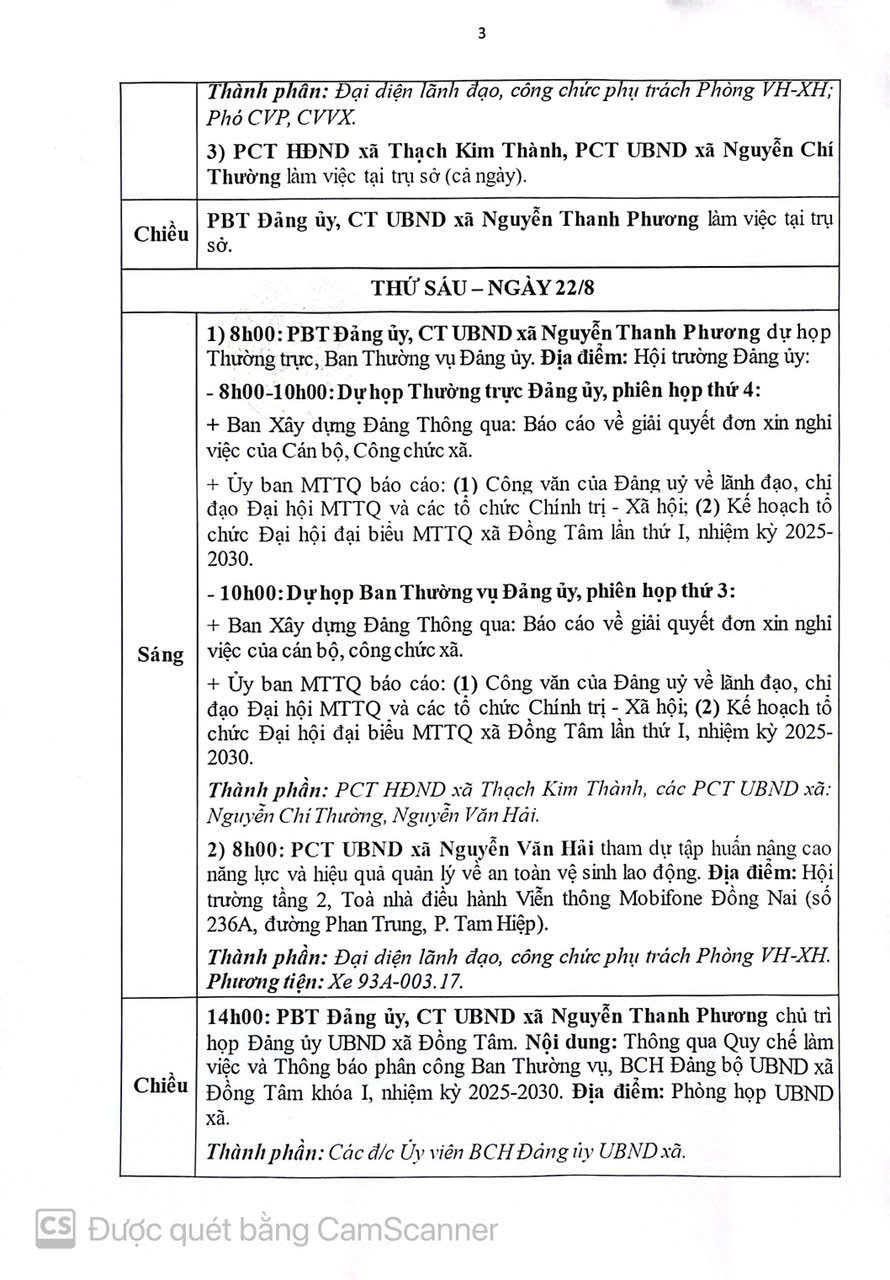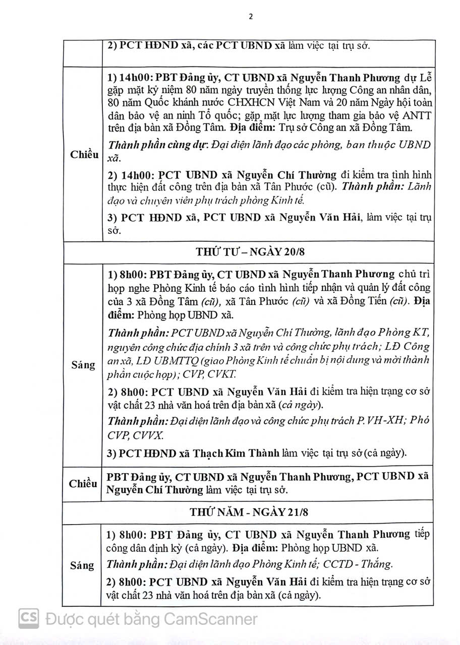 Lịch làm việc của Thường trực HĐND và UBND xã Đồng Tâm Tuần lễ 34 năm 2025 (từ ngày 18/8 đến ngày 22/8/2025)
