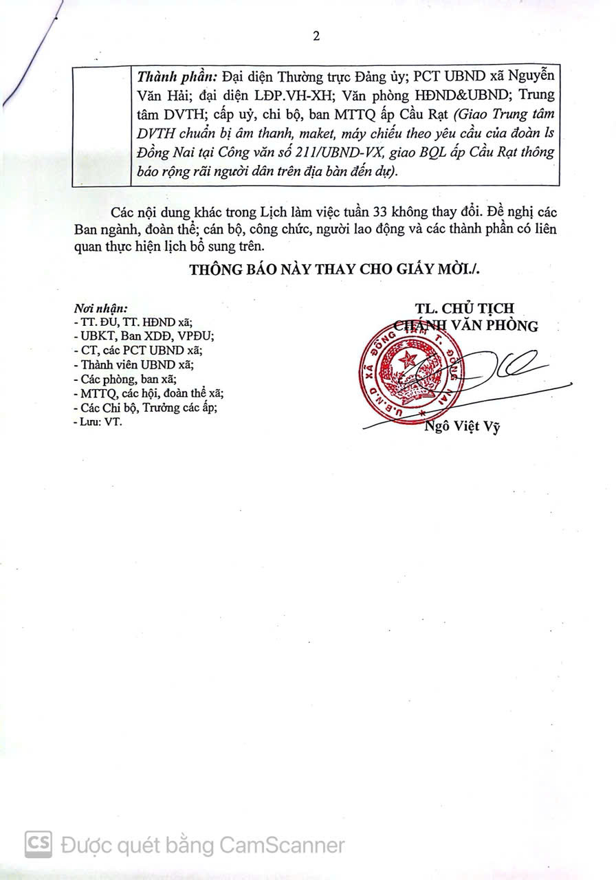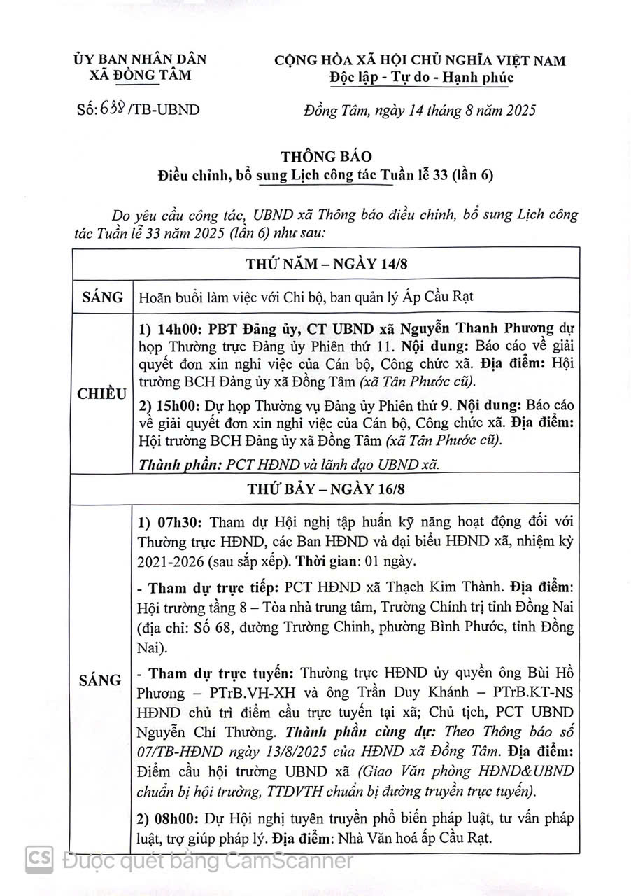Thông báo điều chỉnh, bổ sung Lịch công tác Tuần lễ 33 năm 2025 (lần 6)