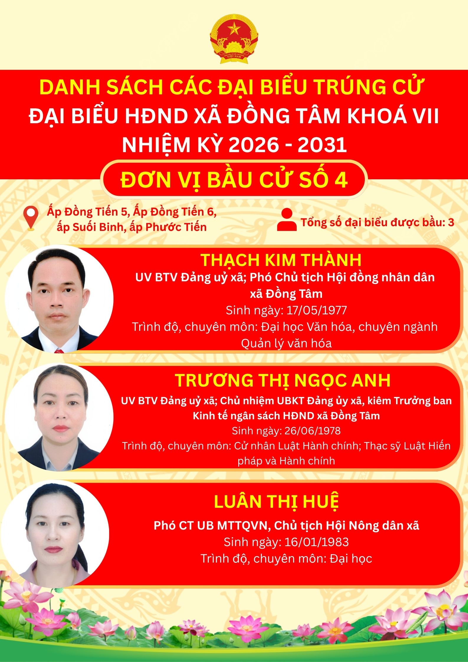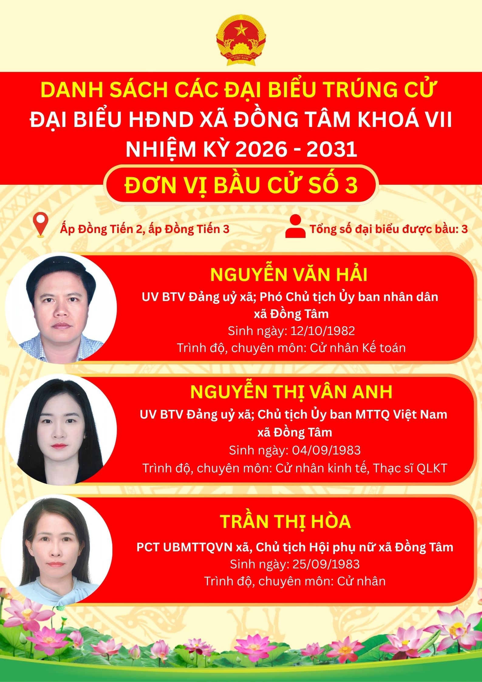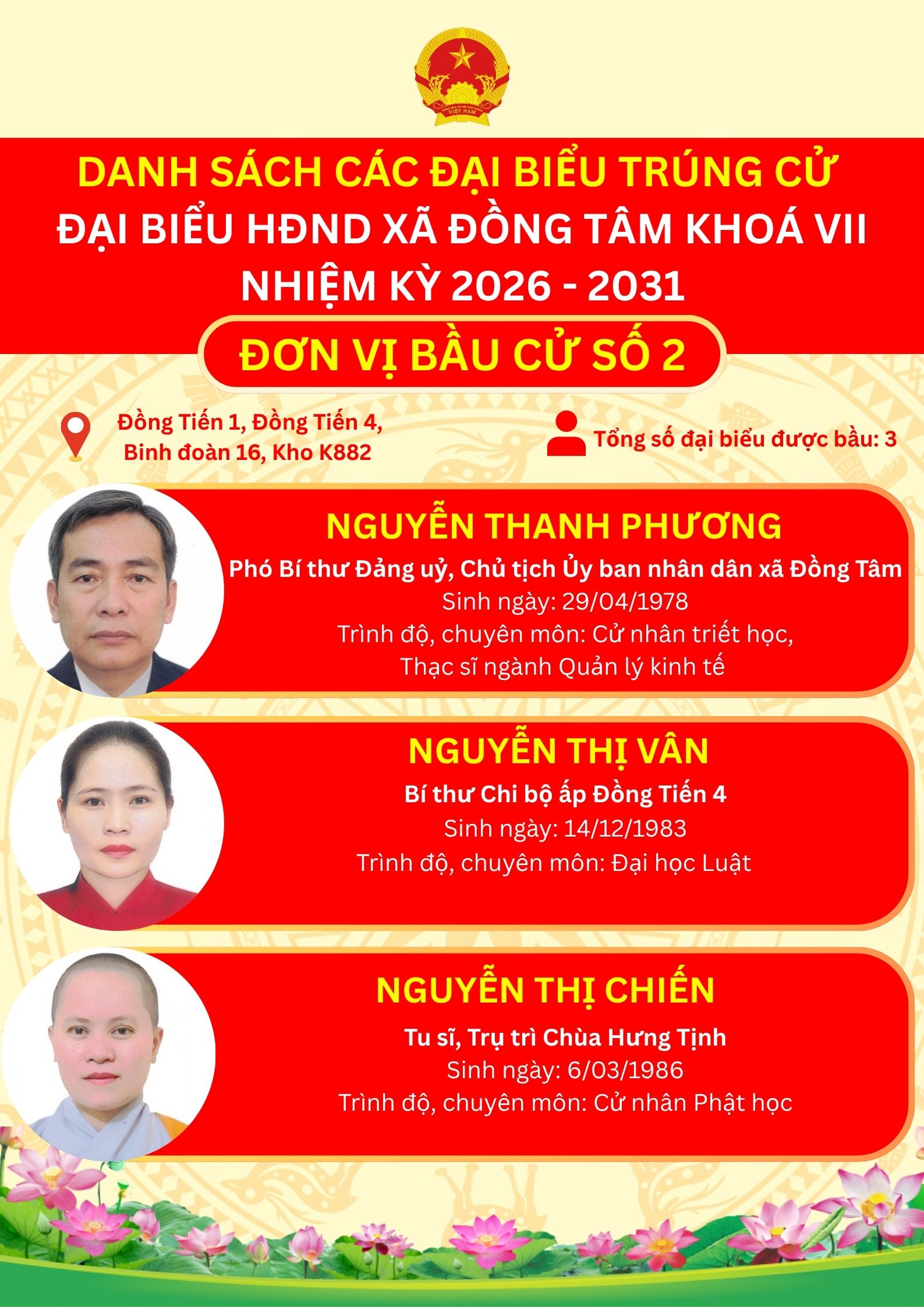 <meta property="og:title" content="Danh sách những người trúng cử Đại biểu HĐND xã Đồng Tâm khoá VII, nhiệm kỳ 2026-2031">